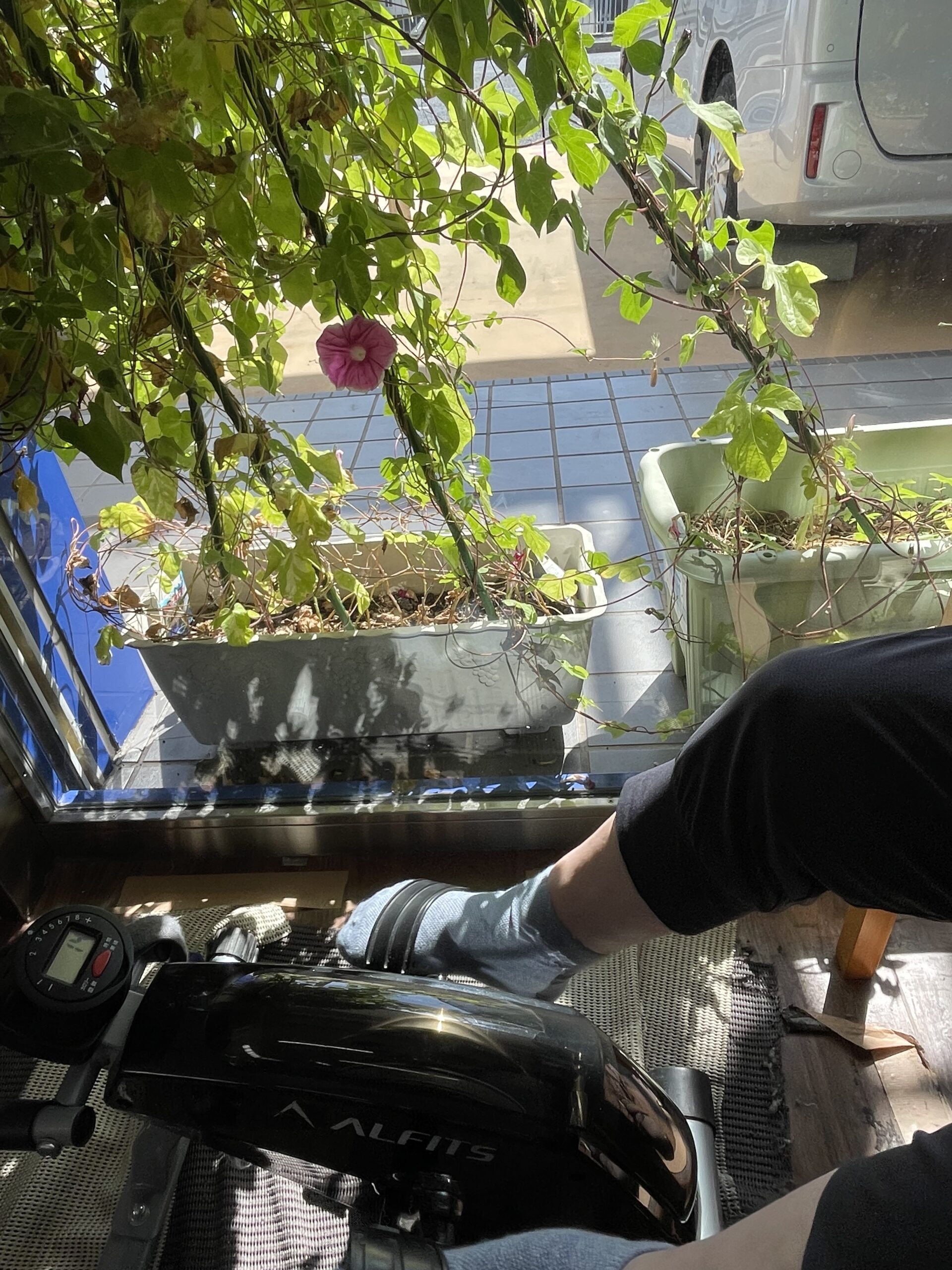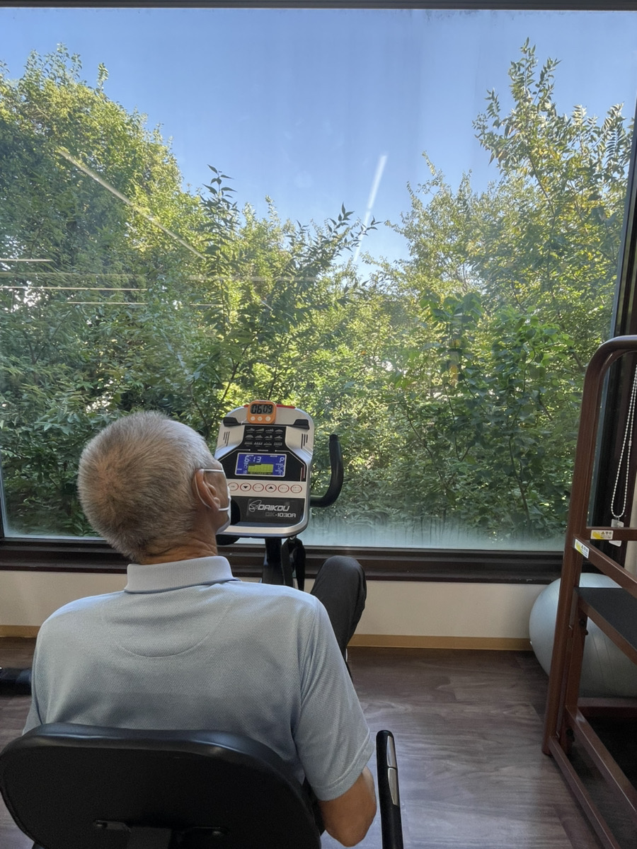 もう一つ、バイクの目の前にある植物も、たくさんの緑の葉を広げて、目に優しく、運動されている皆さまを応援してくれています。🌱このみずみずしい緑を見ながら体を動かすのは、とても気持ちが良いですね。