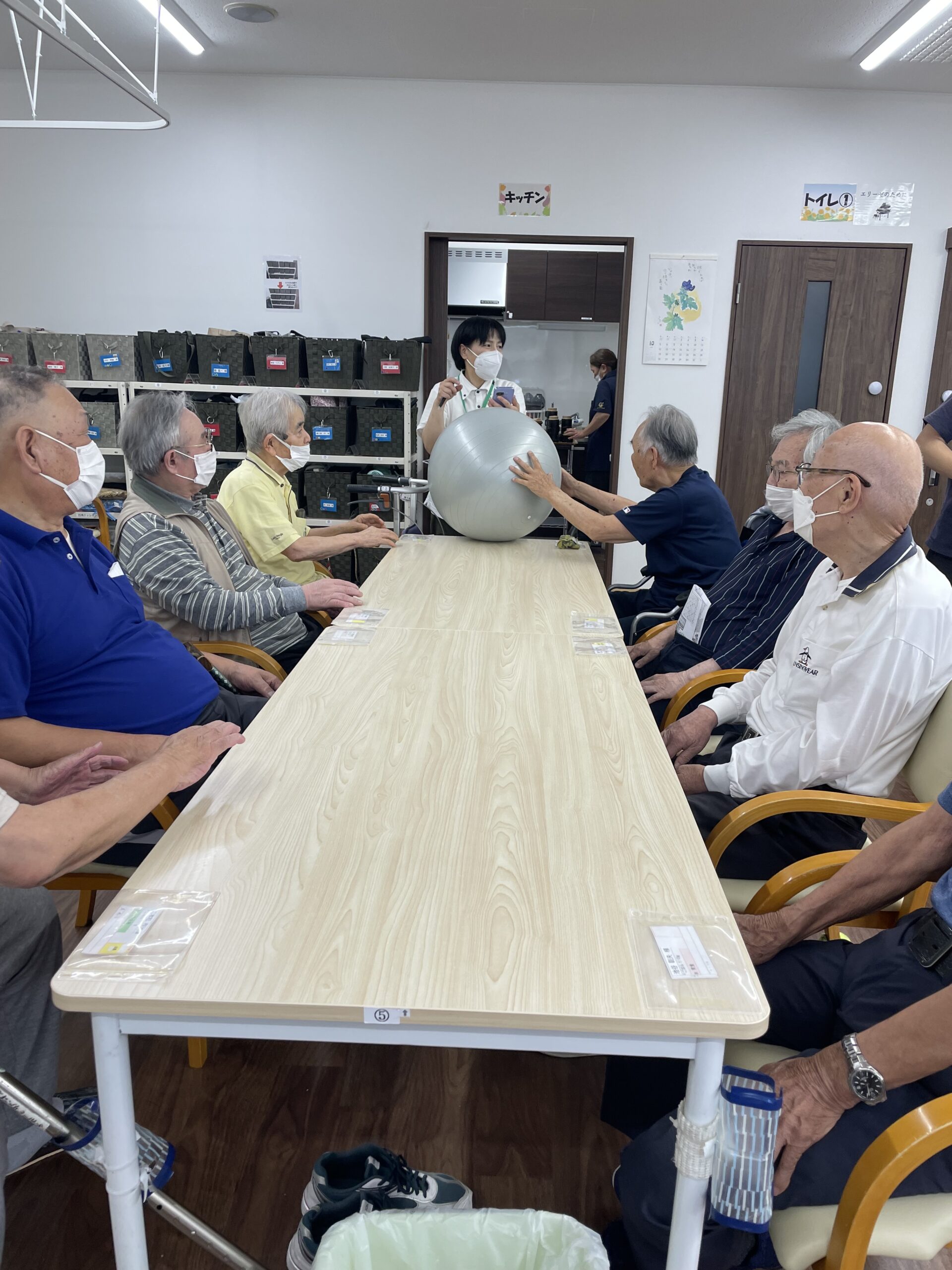 各曜日の利用者様がチームとなり、ボールを運んで一番早く一周回った曜日が優勝です。